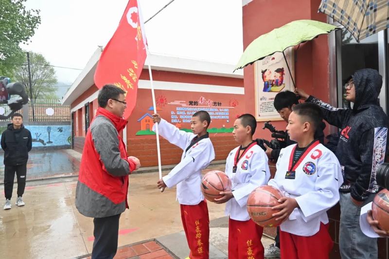 最后,大家前往中國建材楊嶺希望小學(xué)看望師生,中國建材咸陽陶瓷院駐楊嶺村支部書記雷先鋒利用自身特長,開設(shè)跆拳道班,為學(xué)生教授跆拳道。院黨委書記王華代表咸陽陶瓷院向中國建材楊嶺希望小學(xué)贈送學(xué)習(xí)用品、體育用品以及跆拳道服等,并向跆拳道班的成立授旗,希望學(xué)生“文明其精神,野蠻其體魄”,讓精神文明和健康體魄一起茁壯成長。最后,楊嶺希望小學(xué)教師代表為我院贈送牌匾。