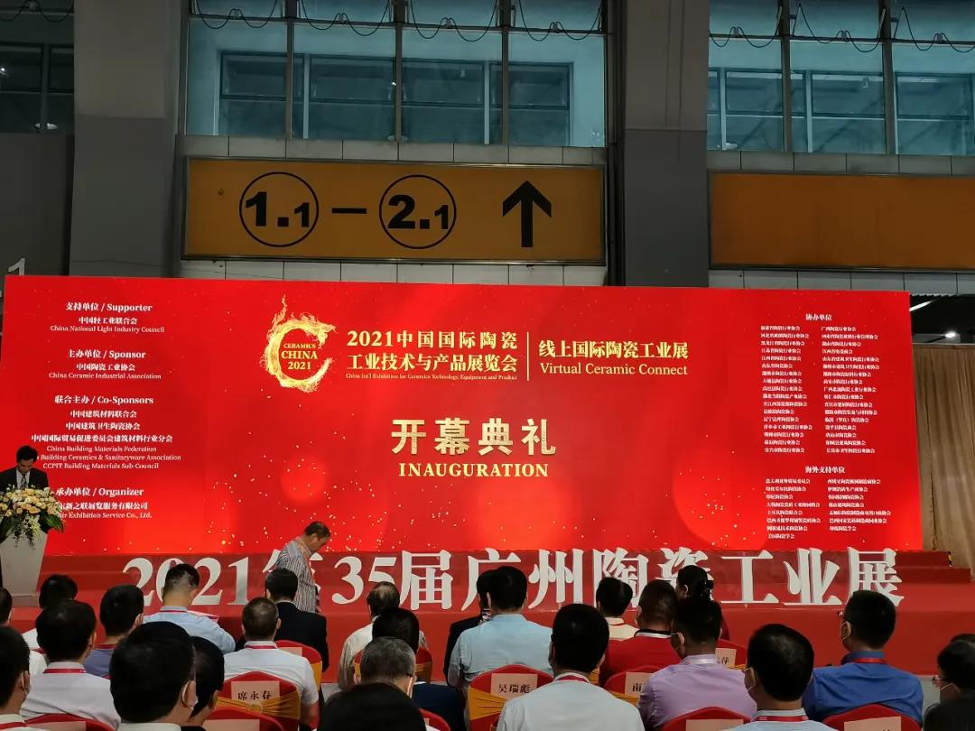 2021年7月27日上午,由中國(guó)陶瓷工業(yè)協(xié)會(huì)主辦、廣東新之聯(lián)展覽公司承辦的2021中國(guó)國(guó)際陶瓷工業(yè)技術(shù)與產(chǎn)品展覽會(huì)(簡(jiǎn)稱“2021廣州陶瓷工業(yè)展”),在廣州琶洲·廣交會(huì)展館A區(qū)正式開幕。中國(guó)建材咸陽(yáng)陶瓷研究設(shè)計(jì)院有限公司應(yīng)邀參加開幕典禮,并榮獲陶瓷行業(yè)裝備制造領(lǐng)先企業(yè)獎(jiǎng)。