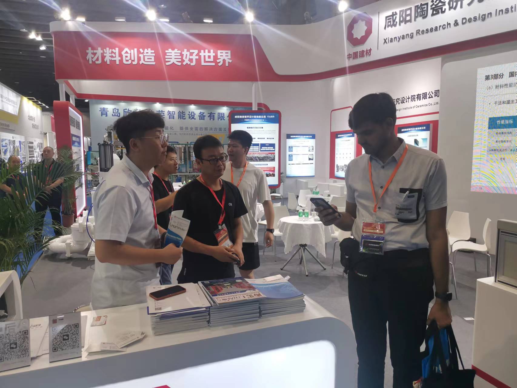 本次展會集中展示了咸陽陶瓷院的科技創(chuàng)新技術及成果,包括:先進陶瓷材料、環(huán)保催化劑及工程設備、干法制粉、YB-300出口型柱塞泵、固廢熱解催化評價平臺、靜摩擦系數(shù)測定儀以及陶瓷磚恢復系數(shù)測定儀等。我院展臺設計新穎、顏色燈光鮮亮、格調醒目,利用多種尺寸的大型噴繪圖片、大型LED屏視頻展示、多臺裝備實物展品、資料圖書等形式進行宣傳推廣,參展期間,我院展臺人流不斷,工作人員專業(yè)熱情地接待各國客戶并進行耐心講解,現(xiàn)場交流氣氛熱烈,受到國內外客戶的高度關注,收獲滿滿。